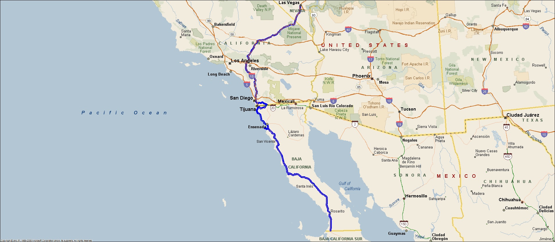 Nun ist es so weit, wir wollen heute die Vereinigten Staaten mit unserem „Hüsli“ verlassen. Nun ist unser „Hüsli“ doch schon fast drei Jahre in Amerika. Legal oder Ilegal? Wer weiss das schon so genau. Aber heute ist der grosse Tag gekommen und wir wollen nach Mexico, beziehungsweise nach Baja California. Der Highway 15 endet genau am Zoll von San Diego und Tijuana. Wir fahren in die Verengung, aber schon von weitem winkt der Mexikanische Zöllner ab. Der Amerikanische Zöllner kommt zu uns und meint, „die wollen euch nicht da drüben, ihr seid zu gross! Ihr müsst zum anderen Zoll, der 5 Meilen entfernt ist.“ Also wird gewendet und so fahren wir halt zurück. Beim nächsten Zoll kommen die Mexikanischen Zöllner gleich zu fünft auf uns zu. Es wird gelacht, gestaunt, nachgefragt und, und, und… die Zöllner sind sich schnell einig, nein ihr seid zu gross für diesen Zoll. Der ist nur für PKWs. „Ihr müsst zum anderen Zoll, der 5 Meilen von hier entfernt ist. „ Hä, da kommen wir ja gerade her?!“ Nun, hier werden wir auf jeden Fall nicht rein gelassen. Also wieder wenden. Scheisse, was nun? Rico ist richtig entmutigt. Von seiner aufgestellten Art und der immer so humorvollen Stimmung ist nichts mehr da. Am liebsten würde er gleich nach Hause gehen.